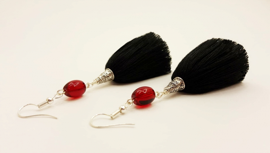 Materiāli: poliestera diegi, stikla pērlītes, metāla āķīši. Sazinieties, ja vēlaties auskarus ar sudraba āķīšiem.
