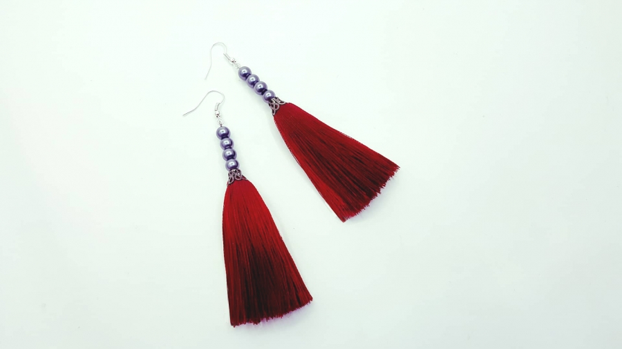 Materiāli: mākslīgais zīds, stikla pērlītes, metāla āķīši. Sazinieties, ja vēlaties auskarus ar sudraba āķīšiem!